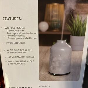 New Huntington Home Cool Mist Ultrasonic Diffuser Two Mist Modes , White LED LIGHT, Auto Shut Off, 100ML Capacity Use With Essential Oils