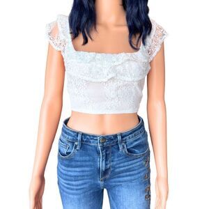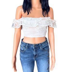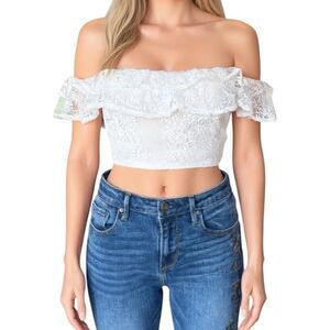 NEW HYFVE White Lace Ruffle Off the Shoulder Summer Crop Top