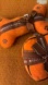 Orange trimmed in brpwn logo ribbon and embroidered paws🐾