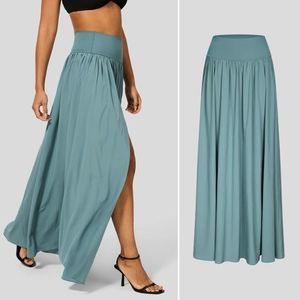 Halara Breezeful™ High Waisted Plicated Split 2-in-1 Flowy Quick Dry Maxi Casual Skirt in Mineral Blue femme, beach, vacation, sexy, earth tone