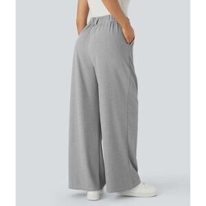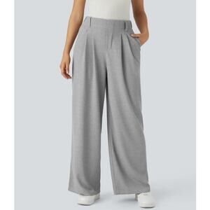 NEW Halara Flex High Waisted Pocket Wide Leg Waffle Work Pants Small Petite Gray
