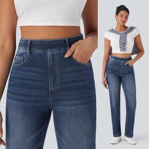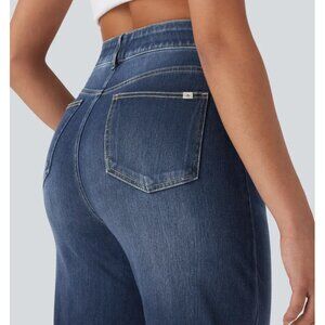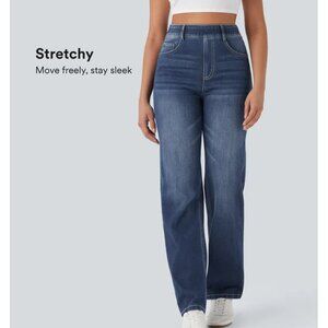 NEW Halara Flex High Waisted Pockets Straight Leg Dark Washed Casual Jeans XL 16