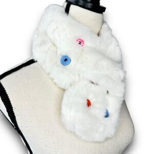 NEW Halara Womens White Faux Fur Button Scarf Winter Warm Snuggly One Size