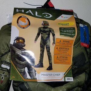 NEW Halo Master Chief Halloween Costume Boys Small 4-6 Green Mask Muscles