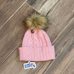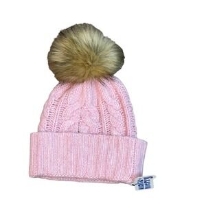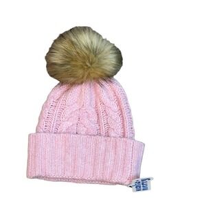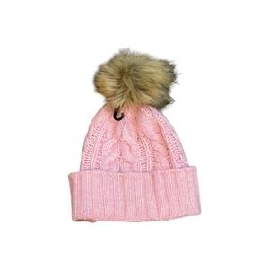 NEW Halogen 100% Cable Knit Cashmere Pompom Beanie Pink One Size