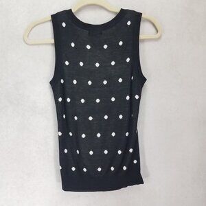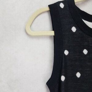 NEW Halogen Nordstrom Size M Petite Crew Neck Knit Tank Top in Black White Polka Dots NWOT $49