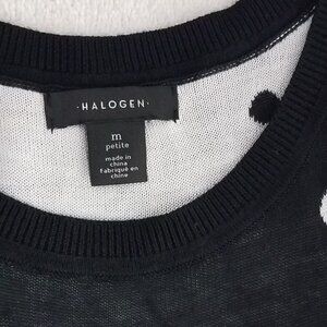 NEW Halogen M Petite Crew Neck Knit Top Polka Dots