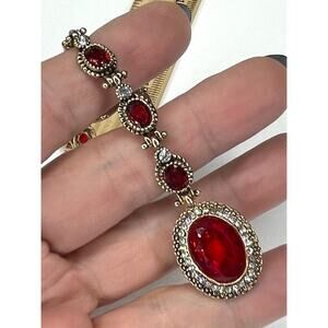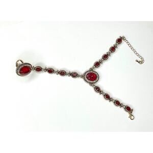 NEW Hand Bracelet Ring Red Rhinestone Gold Tone Unique Fashion Jewelry set m