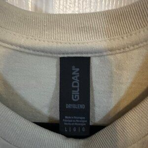 NEW handcrafted highland cow shirt. It is a size large and made out of 50% cotton 50% polyester. A Gildan shirt was used. It is 22" armpit to armpit and 30" from the shoulder seam to the bottom hem. It is a light tan color.