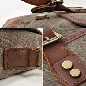Handmade Vintage oil waxed canvas Satchels in Drab Green and Dune Brown. Crafted from premium thick canvas, these outdoor-style bags blend timeless charm with modern functionality. Perfect for everyday carry (EDC), each satchel features multiple compartments, an adjustable strap, and classic brass hardware. Durable and water-resistant. Grab them while supplies last.