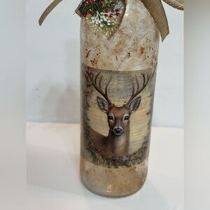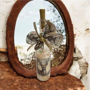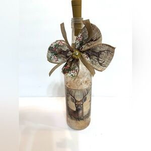 NEW Handcrafted Primitive Deer Country Christmas Lighted Wine Bottle Battery powered