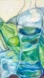 NEW Handmade Original Hand Crafted Still Life Art Green & Clear / Green / Blue - Plastic & Glass Bottles Artwork - Wall Home Decor - Colored Pencil Drawing - Approx 6" x 8"