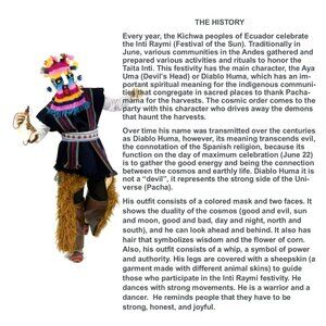 This folkloric character is part of the customs and legends of the northern Sierra of Ecuador. Haya Huma, -in Kichwa- is considered the leader of the community and a powerful warrior, possessor of the vital energy of nature. For this reason, it appears symbolically in festivities related to harvests, such as the Festival of the Sun or Inti Raymi, the celebrations of San Pablo, San Juan and San Pedro.