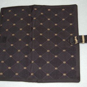 Pattern: Diamond textured navy black background, with small flower print in tan color throughout. The horizontal stripes are the reverse side of this fabric to accent for unique combination.