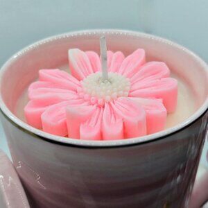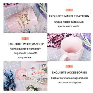 The delicate pink marble mug with heartfelt gold lettering nestles a calming soy wax candle, its floral scent weaving serenity.