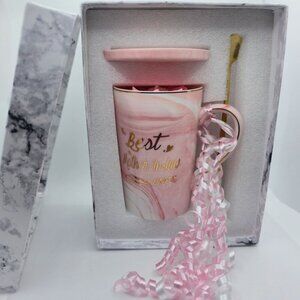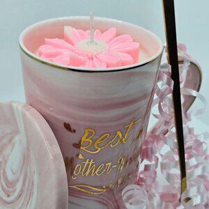 NEW Handmade "Best Mother-In-Law Ever" Ceramic Mug Candle Gift Set w Lid & Spoon