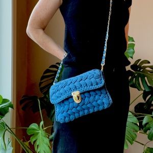 NEW Handmade Crochet Crossbody Handbag with Gold Chain