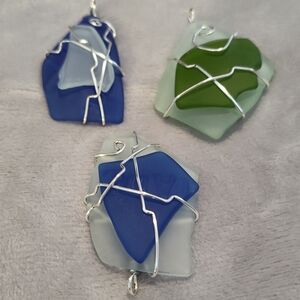 NEW! Handmade Elegant Silver Wire Wrapped Sea Glass Pendants