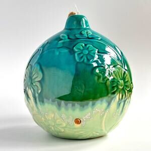NEW Handmade Floral Turquoise Ceramic Bird House/Feeder