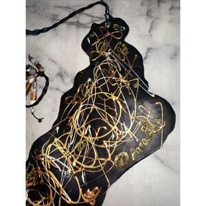 HANDMADE. SIGNED. Genuine leather. Made in Italy. 90s vibe. Leather is 20" length. And 6" at its widest. The rope is 18 " on each side. Beads are heavy. Brand new. Never worn. Leather smells amazing.