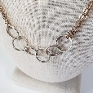 Gold and silver tone rings necklace. Handmade by a local designer. Measures about 19". Brand new and never worn. Smoke free home.