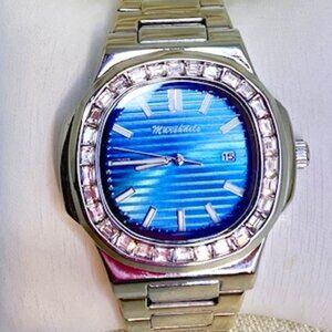You will love this handsome men's Marshails watch. Blue face, and stainless-steel tone band. Crystal CZs around the face. This watch is water resistant for 100 meters tested.