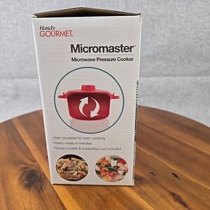 The NEW Handy gourmet micro-master POP Microwave Pressure Cooker in red is a must-have kitchen gadget for anyone looking to cook up delicious meals quickly and easily. This set includes a measuring cup and spoon, making it perfect for combining and serving your favorite dishes. The handy Gourmet brand ensures quality and reliability, and the pressure cooker feature allows for even faster cooking times. Made from mixed materials and dishwasher safe, this product is both practical and convenient for any home chef.