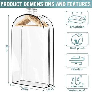 NEW Hanging Plastic Clothes Cover for Coat, Dress, Fur, Shirt, 4 Pack, 40” Long