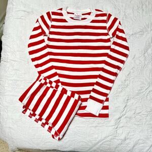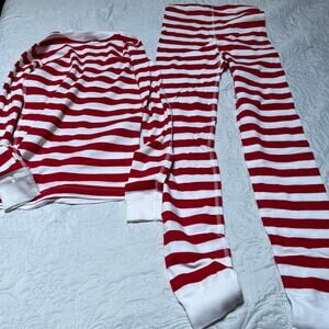 New without tags Hanna Andersson two piece long John style organic cotton pajamas. Red and white bold stripe pajamas, cute for the holidays. New and unwashed. Size 140 / 10.