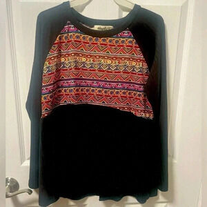 NEW Haptics BLACK RIB RAGLAN AZTEC BABYDOLL LONG SLEEVE TOP SIZE S, M, L