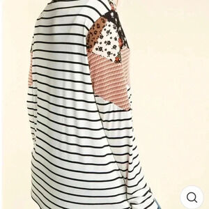 NEW Haptics BLACK RUST & IVORY CHEVRON COLOR BLOCK LONG SLEEVE TOP SIZES S,M,L