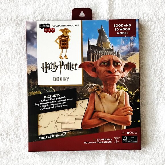 NEW! Harry Potter Book & 3D Wood Model Dobby Incredi Builds Collectible Wood Art