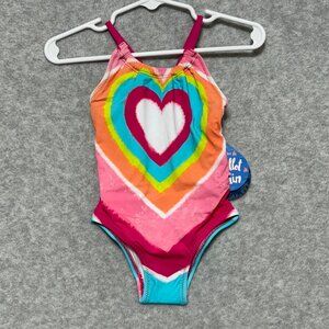 NEW Hatley Girls Swimsuit Size 2T One Piece Pink Heart Blue Orange