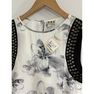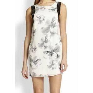 NEW Haute Hippie Studded Floral Shift Dress Silk Sleeveless Black White Size XS