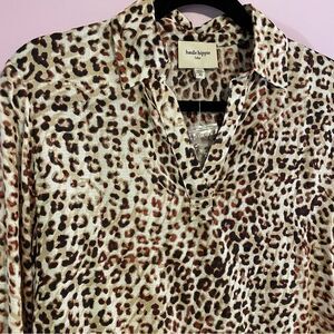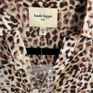 NEW Haute Hippie Tunic Top Sheer Leopard Print Chiffon Boho Modal Popover XS