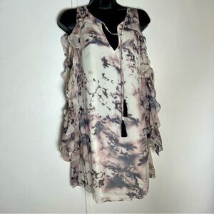 NEW Haute Hippie Silk Pink Gray Flowers in the Sun Cold Shoulder Marble Tie Dye print Mini dress XS