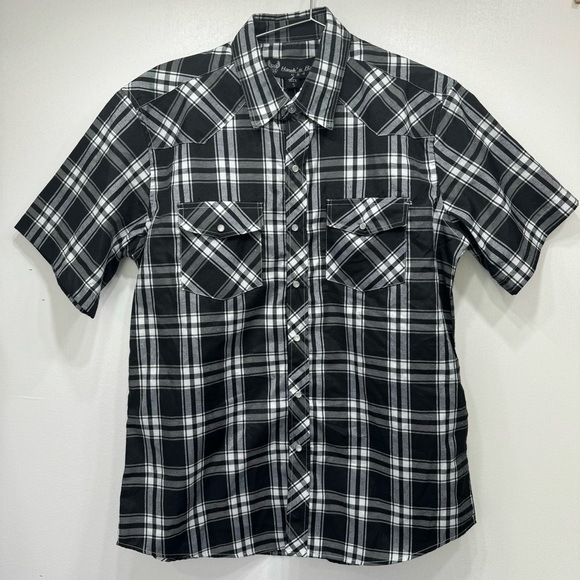 NEW Hawks Bay Black & White Plaid Short Sleeve Pearl Snap Western Shirt Men’s S