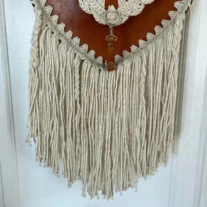 Heart-Shaped, Leather Bag, Macrame, Mexico, Boho, Hippie, Bohemian, Chic, Fashion, Handmade, Unique, Crossbody, Bag, Accessories, Style, Vintage, Retro, Coastal, Beachy, Whimsical, Free-Spirited.
