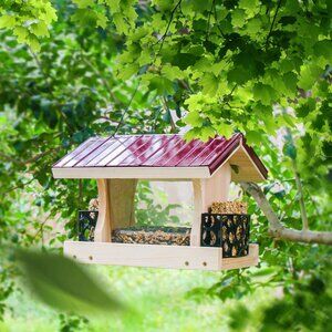 NEW Heavy Duty Bird Feeder Wood Birdhouse Garden Decor Bird House Hand Crafted Handmade
