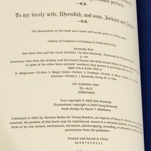 NEW Hee-Haw-Dini and the Great Zambini by Kim Kennedy. Who says animals can’t be magicians? Hee-Haw the donkey and Chester the field mouse live on a farm but dream of becoming master magicians. None of the other animals believe they can do it, but when the Great Zambini’s magic chest falls off his train, they just might have a shot. New, never read. Purchased for classroom library but never included. Fast Shipping