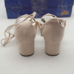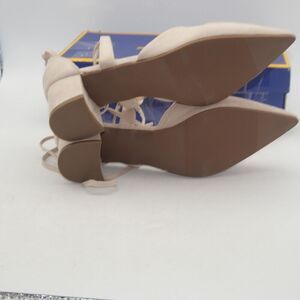 NEW Heel The World Women's 9 Nude Tan Beige Strappy Lace Up Chunky Heels