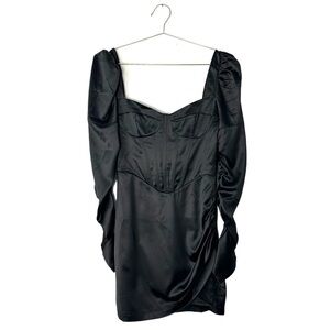 Satin puff sleeve minidress with corset
