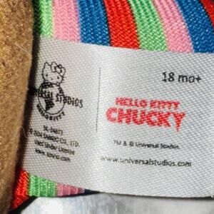 Hello Kitty bear cutie plush featuring Tiny Chum in a Chucky inspired design.