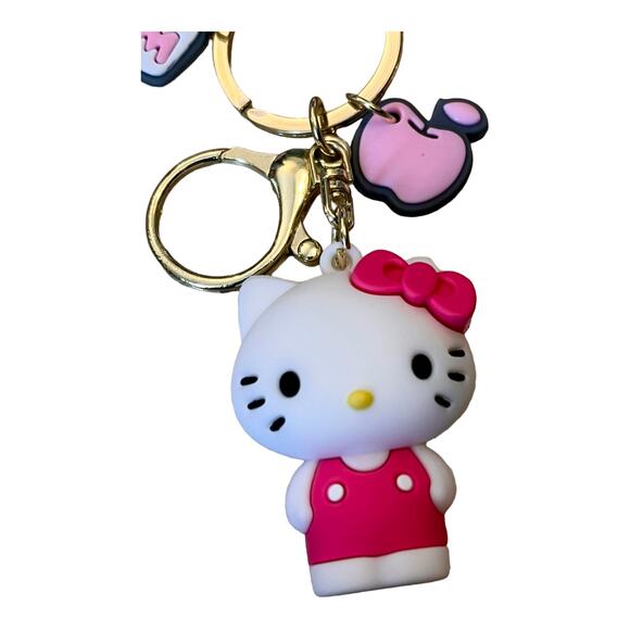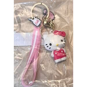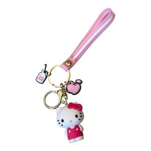 Details: This Hello Kitty Key Ring Features A 3.75" Wrist Strap, 1.75" Hello Kitty Figurine, Milk Cup Charm, Apple Charm, Key Ring And Key Fob Clip For Various Attachment Options!