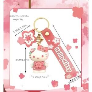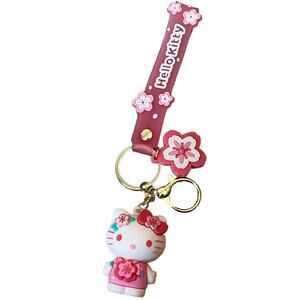 Details: This Hello Kitty Key Ring Features A 4.5" Wrist Strap, 2" Hello Kitty Figurine, Flower Charm, Key Ring And Key Fob Clip For Various Attachment Options!