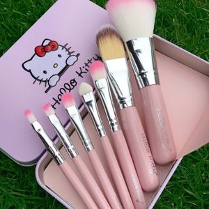 Brand new makeup brush set. Comes in 7 travel/mini sized brushes. Super cute!! Comes with tin box. All brushes are new and still in their individual wraps.