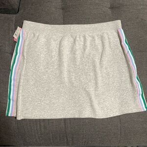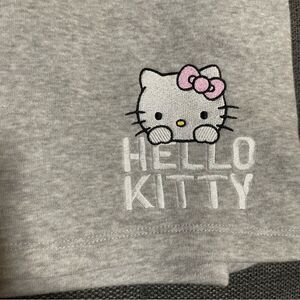 Cute gray skirt with Hello Kitty design, item is New with tags and available in a size XXL. Also fits a size XL. The drawstring waist is just for show and does not actually tighten. The skirt does have a pocket on either side. It is a sweatpant material. Perfect for casual wear. Skirt is 16” in length.