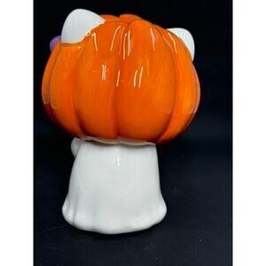This adorable Hello Kitty with a Pumpkin Hat is the perfect addition to your Halloween decor. The hat features a purple bow and comes with a matching pumpkin basket. The figurine is made by Blue Sky and is designed as a collectible item. The orange color of the hat and basket adds a charming touch to your display. The figurine is perfect for collectors or fans of Hello Kitty. It belongs to the category of Figurines, Holiday & Seasonal, and Collectibles. The hat and basket make a great combination with other Halloween decorations. Add this charming duo to your collection today!