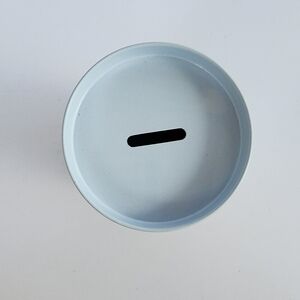 Super cute Hello Kitty coin bank. Tin construction. The easily removeable top allows for simple coin retrieval.
