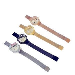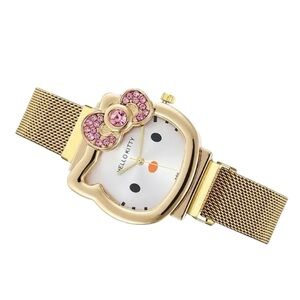 Adorable Hello Kitty watches with bow accents. Available in gold and silver. Perfect for adding a playful touch to any outfit.